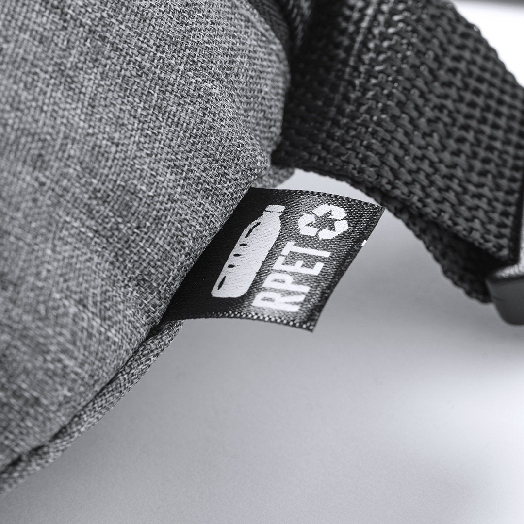 Bolsa de cintura de linha nature fabricada em resistente 600D RPET efeito melange. Elaborada a partir de plástico reciclado para incentivar a reutilização dos resíduos plásticos e contribuir para a sustentabilidade do planeta. Compartimento principal com fecho de correr e alça ajustável com fecho de fivela. Desenhada para atividades desportivas e de lazer, com distintivo RPET na etiqueta exterior.