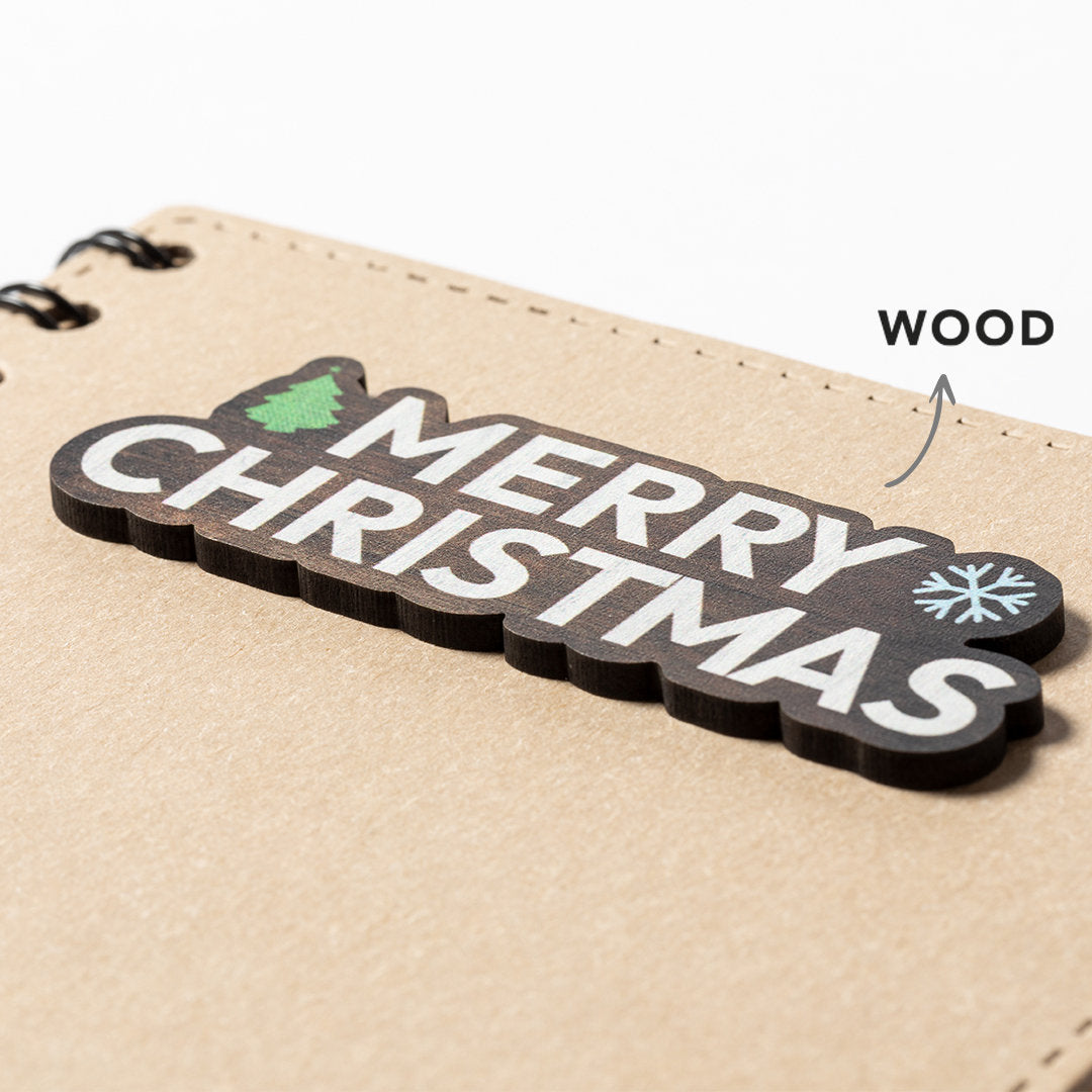 Caderno de argolas da linha nature e design natalício, com capas rígidas de cartão reciclado. Inclui 80 folhas pautadas e design eco.