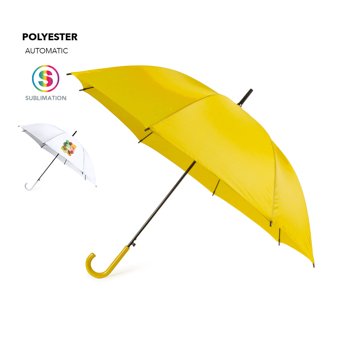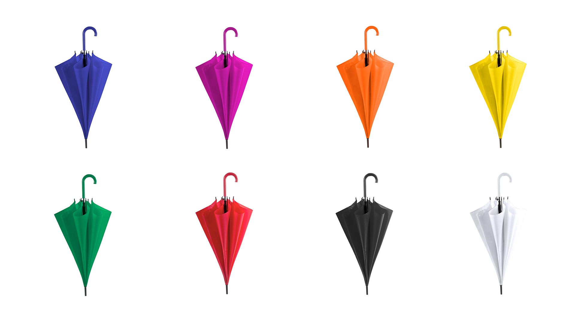 Guarda -chuva com 8 painéis em uma ampla variedade de toneladas e 105 cm de diâmetro. Abertura automática, em material de poliéster resistente, com costelas metálicas pretas e alça de cor correspondente.
