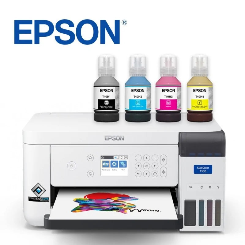 A SC-F100, modelo básico da linha de impressoras profissionais de sublimação SureColor da Epson , herda a tecnologia de seus modelos superiores, como o cabeçote de impressão PrecisionCore MicroTFP.