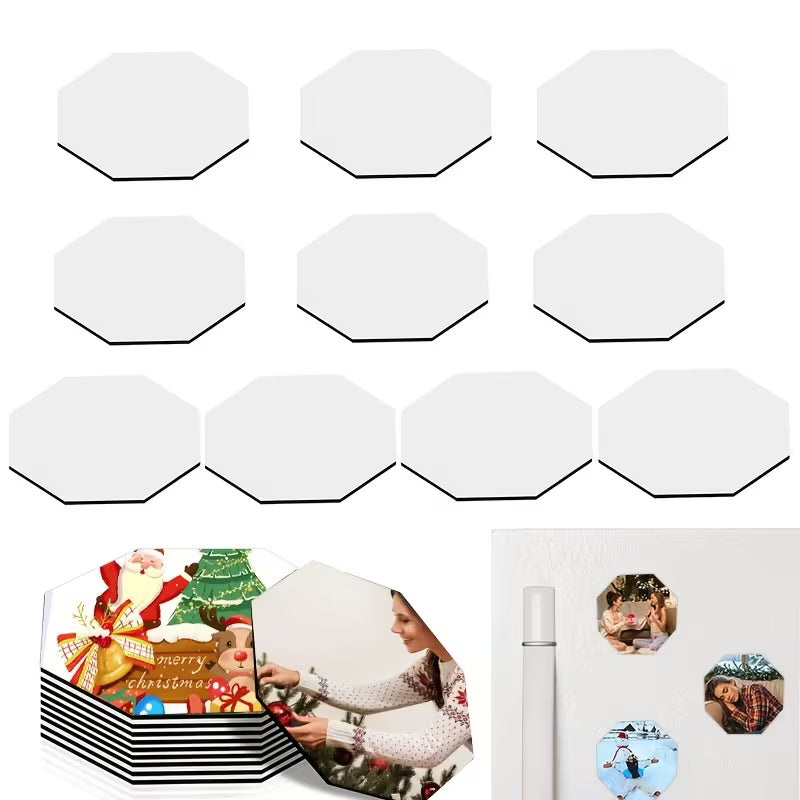Personalize em 3 formatos diferentes! Ímanes de frigorífico em branco para sublimação, disponíveis em coração, octogonal e redondo, perfeitos para decoração de cozinha e presentes festivos personalizados.