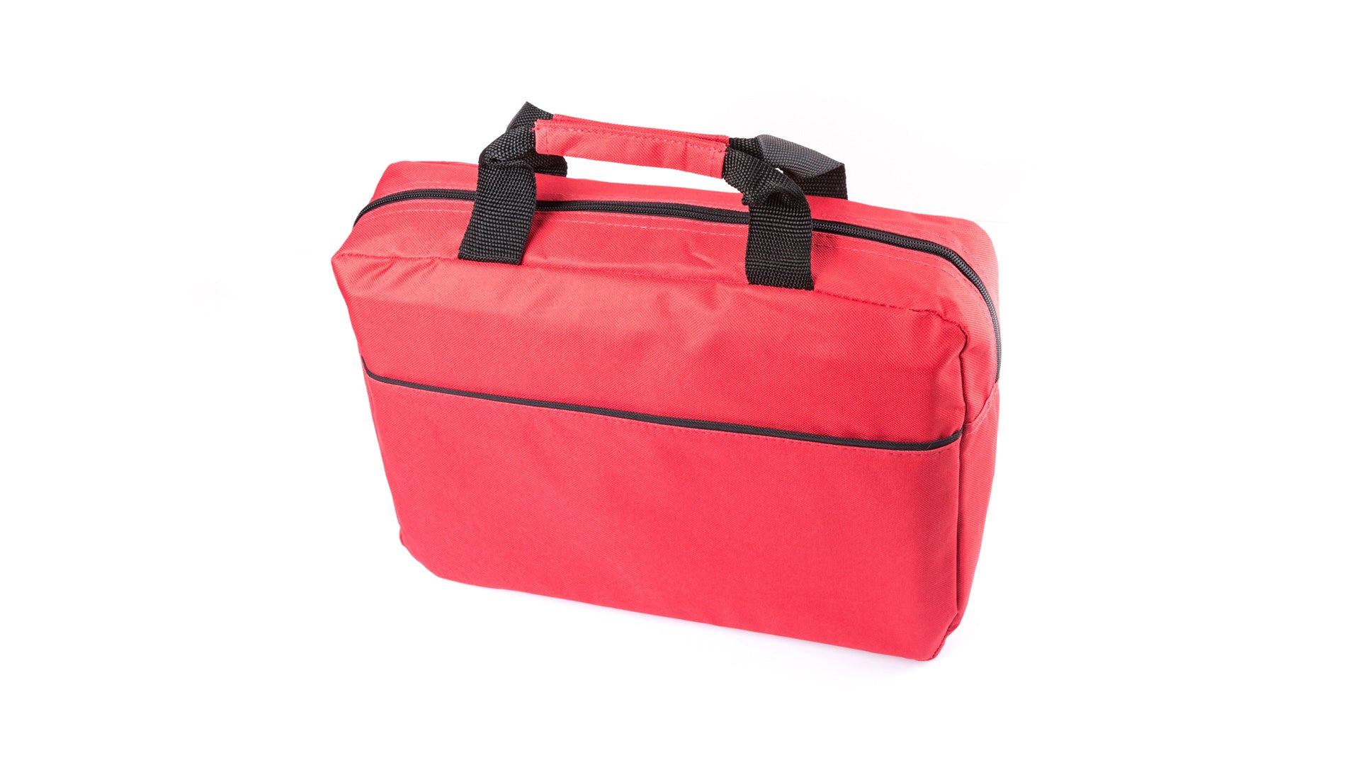 Bolsa de documentos com fechamento de zíper no acabamento macio de poliéster 600D. Em tons brilhantes e com alças de transporte reforçado em cores correspondentes.