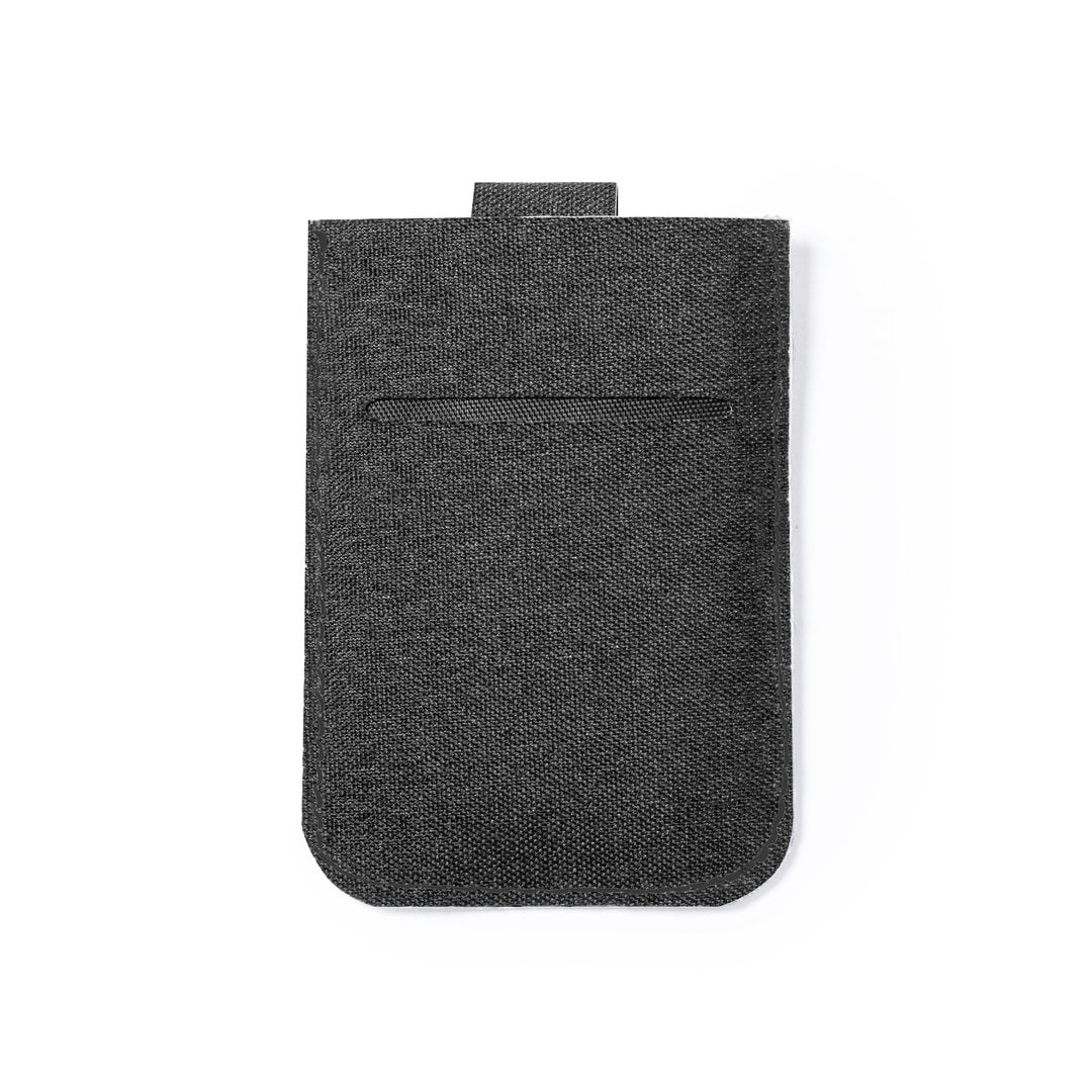 Elegante porta-cartões fabricado em poliéster RPET de acabamento de cor preta. Com fecho magnético, capacidade para 5 cartões e mecanismo de extração puxando a fita do fecho. Com tecnologia de segurança RFID (Identificação por Radio Frequência) que mantém seguros os seus dispositivos de transmissão de identidade. Distintivos RPET e RFID no exterior.