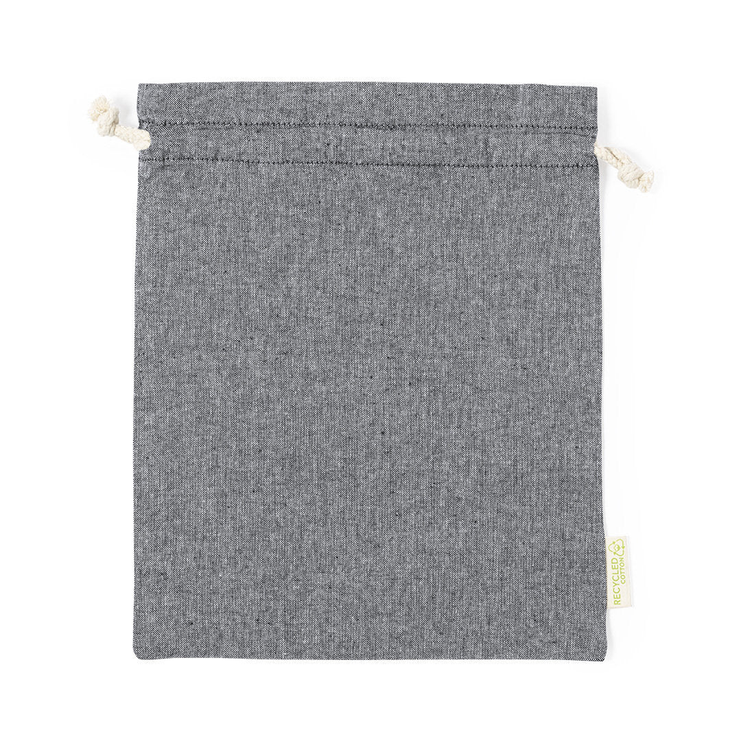 Saco eco-friendly em resistente material algodão reciclado GRS de 120g/m2. Certificação GRS (Global Recycled Standard / Standard de Reciclagem Global), que garante a origem reciclada do material usado para fabricar o produto. Fecho de cordão de algodão e acabamento cosido, inclui etiqueta exterior com distintivo algodão reciclado.