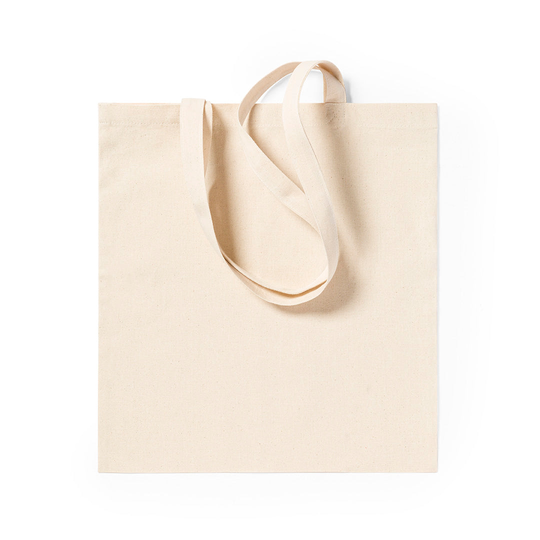 Saco em resistente material algodão de 240g/m2 com acabamento de cor natural. Com asas compridas reforçadas de 70cm e acabamento cosido. Resistência até 9kg de peso.